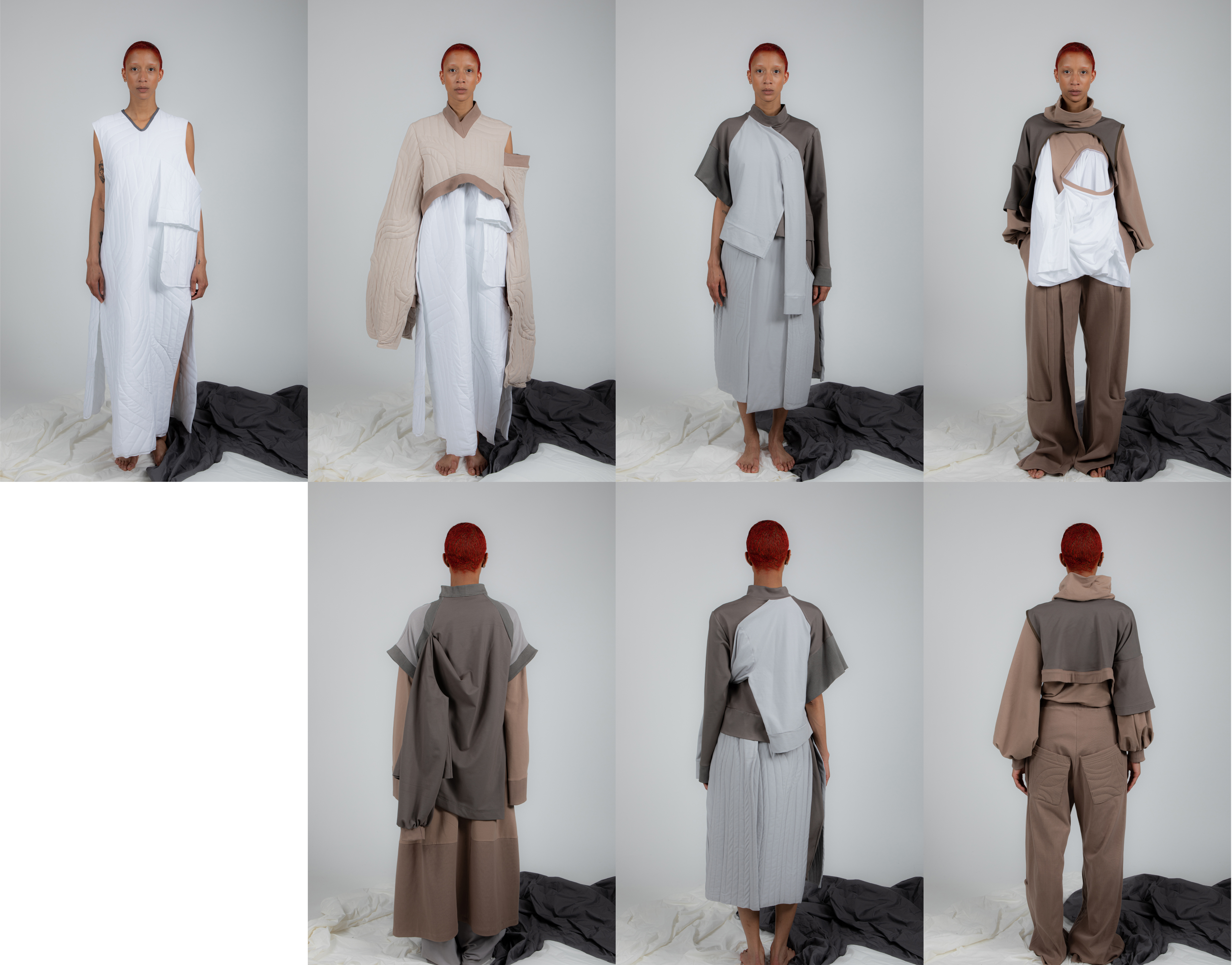 In this project, my partner and I were asked to make a collection based on the archetypes: T-shirt, sweatshirt and sweatpants. We started this project in the Fall 2021 semester, which was one year after the Covid pandemic began. Therefore, the three archetypes reminded us of the times we spent during quarantine at home, wearing comfortable garments. Through this shared experiences, we also thought of Tracey Emin’s art installation, “My Bed”, which was her expression of vulnerability, comfort and depression. Thus, our main source of inspiration for silhouettes was set.